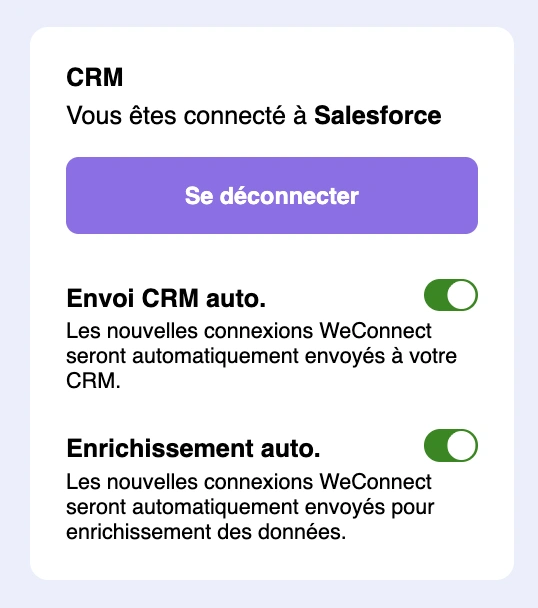 Une fois activé, Chaque nouveau prospect collecté via WEMET est automatiquement envoyé vers Salesforce sans action manuelle