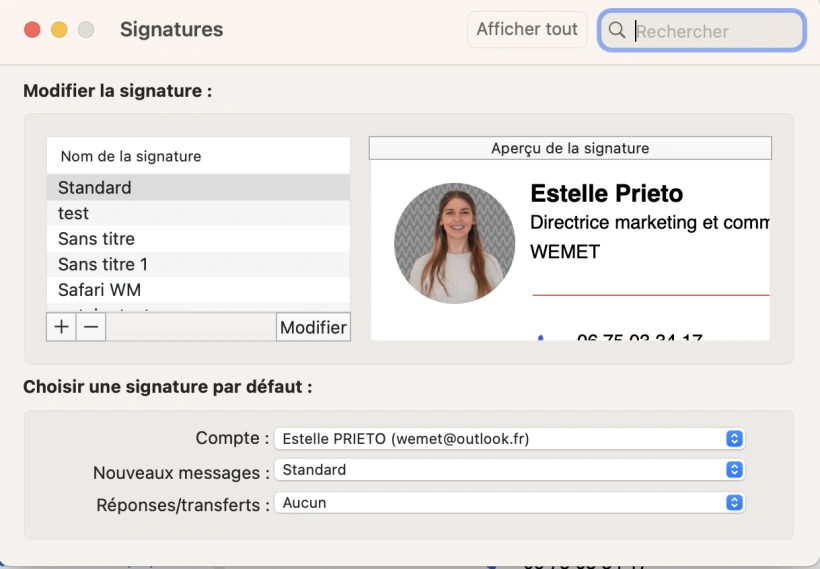 Pour confirmer que votre signature a été intégrée correctement, composez un nouvel e-mail. Votre nouvelle signature devrait apparaître automatiquement dans la fenêtre de composition. Si ce n'est pas le cas, revenez sur les étapes pour vous assurer que tout a été paramétré correctement.